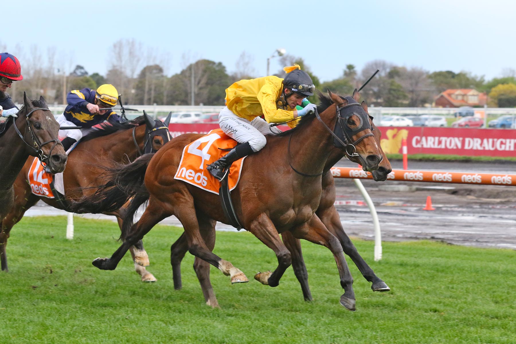 Ridden slightly further back than usual by jockey Jamie Mott, Callsign Mav was sitting in sixth place up to around the 800-metre mark.